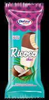 Descripción: Helado de crema en cono de galleta bañado en chocolate y coco.