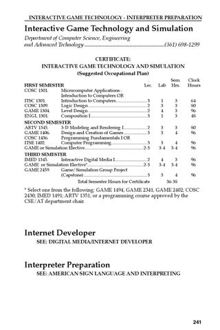 Department of Computer Science, Engineering and Advanced Technology..........................................................(361) 698-1299 CERTIFICATE: INTERACTIVE GAME TECHNOLOGY AND SIMULATION (Suggested Occupational Plan)