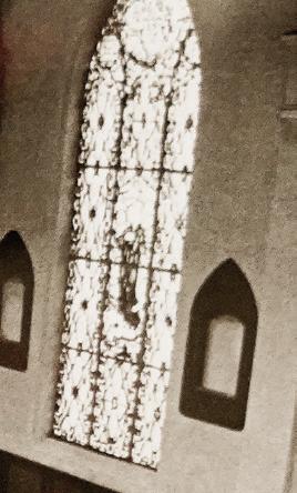 The building and chapel did not have bricks for their first twenty-one years. The exterior of the building looked this way until 1955, when the face was redesigned and the bricks were added.