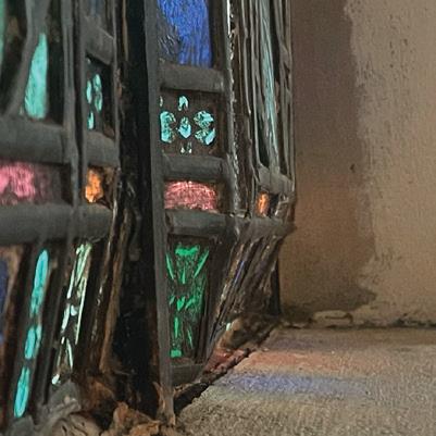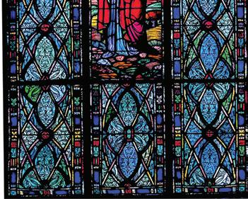 Return and install the restored windows into their original frames and add clear exterior storm windows to protect the stained glass from the weather in the future. Additionally, we will install exterior lights to illuminate the colored panes during evening performances.