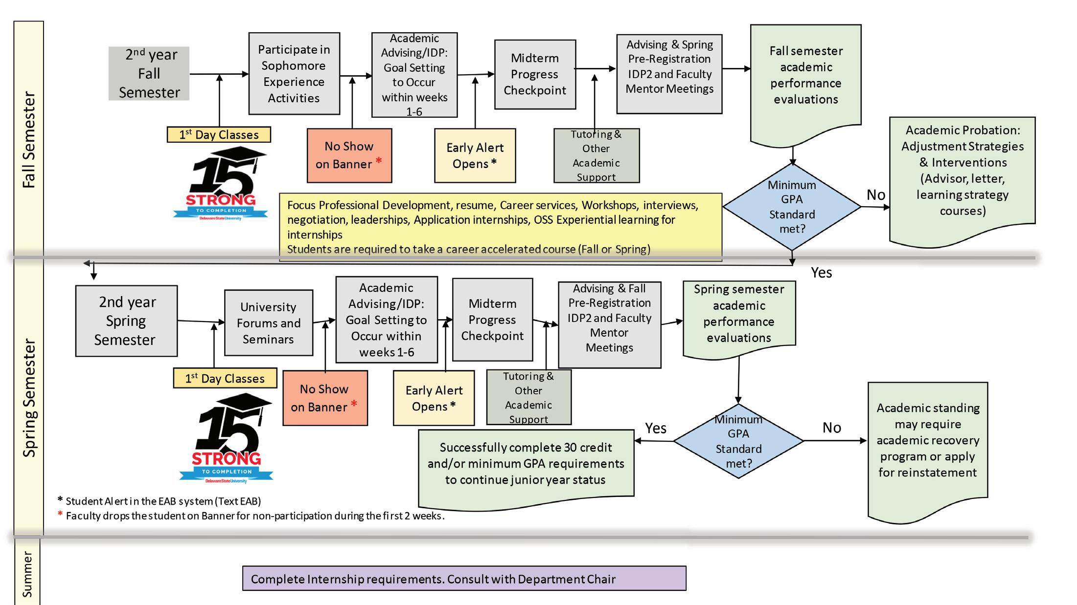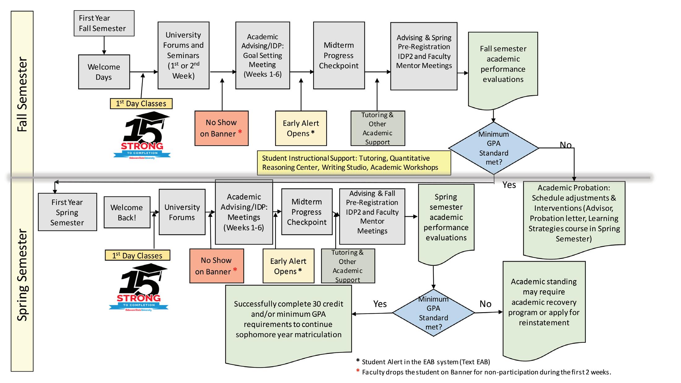 During your freshman year, we will assist you in formulating an educational plan and introduce you to career goals that are closely aligned to your academic interests. Your Academic Advisor will partner with you to develop your Individual Development Plan (IDP) (more information on your IDP, Page 16). You will be actively engaged and on a solid path to graduate within four years.