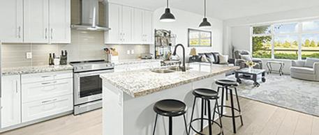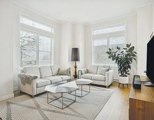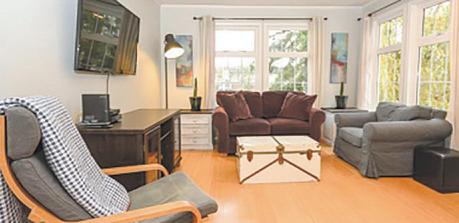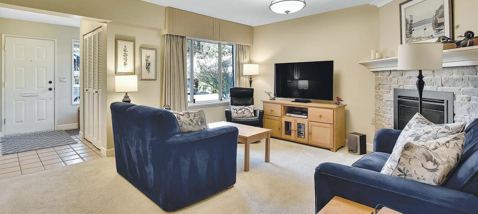 Fully re novate du pper ra ncherstyle townhouse with 2 bedrooms +d en (o r3 rd bedroom),2.5baths, and 1,70 0s q.ft.of bright living space. Fe at uresnewk itchen, baths, flooring, lighting, and appliances,pluson-demand hot wate r. Openlayo utwith gasfirepla ce,w hitec abinets, quartz co unters,andblack st ainlessa ppliances.Both bedrooms have ensuites Enj oy twos unnyd ecks,garage +extrap arking,in aq uiet locationnearHolly School.