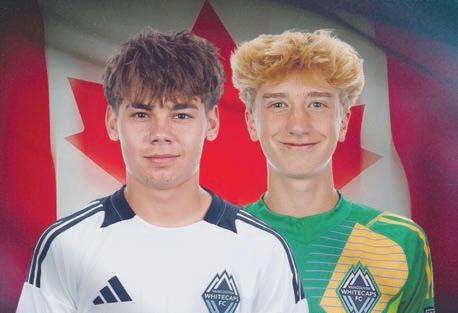 Delta’s Sam Rogers, right,goalkeeper forthe Whitecaps FC BMO Academy, isoneof21players selected by Soccer Canada fortheU-17 national team2026 Concacafmen’s