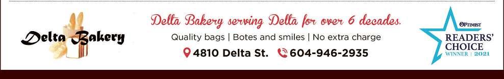 Published every Thursday by the Delta Optimist a division of LMP Publication Limited Partnership 5008 47A Avenue, Delta, BC V4K 1T8 Phone 604 946 4451 Deliveries 604 946 5171 wwwdelta-optimist com