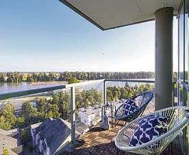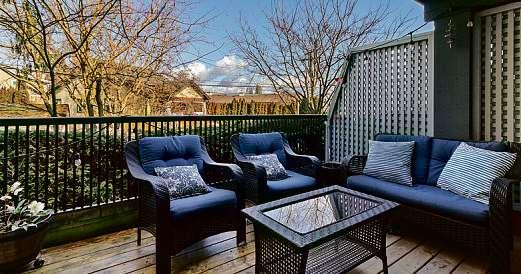 Featuring 2 bedrooms, 2 bathrooms, living room, dining area, den and spacious kitchen - views from almost every window. Updated kitchen with granite countertops, engineered hardwood flooring, newer windows, 2 parking spots and massive storage locker. Amazing 732 square foot wrap around deck with access to the courtyard. Riverwest is one of Ladners desirable complexes with great amenities including a workshop.