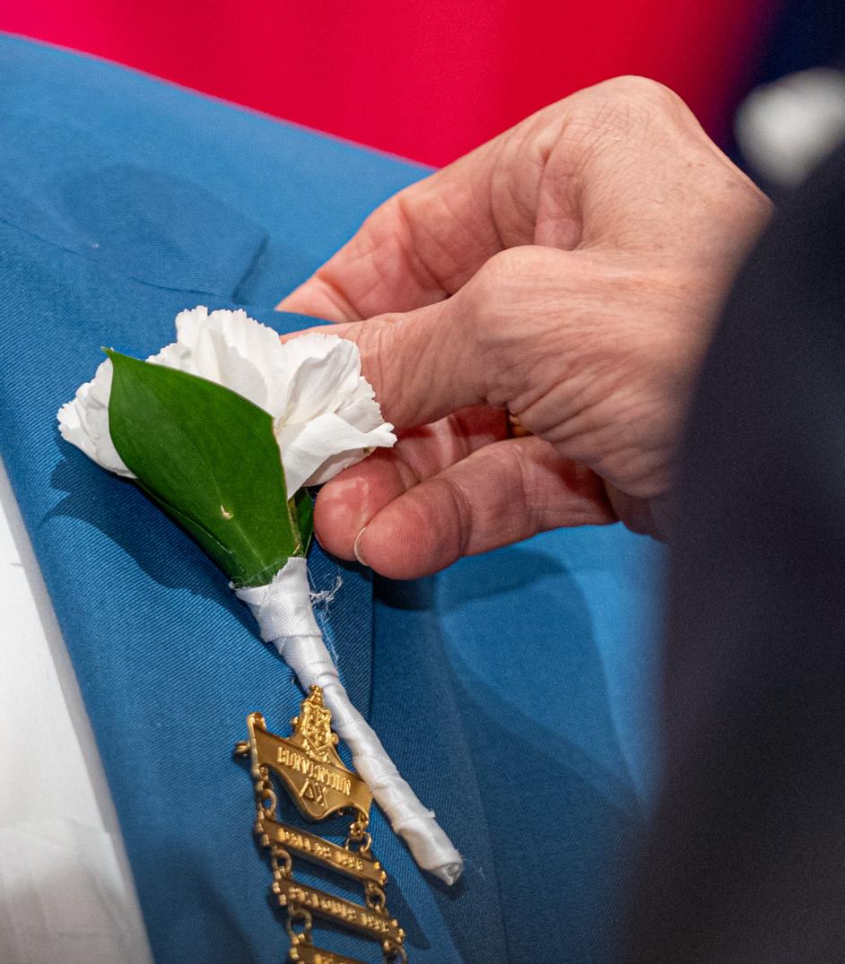 Themorningcontinuedwiththedelegationapprovingthe63rdInternational ConventionHonoreeHamiltonHenderson(NorthwestMissouri’82) andpresentingthenewestmembersoftheOrderoftheWhiteCarnation,Bob Hendershot(Purdue’72)andChadWolett(ArizonaState’94).Photo 3