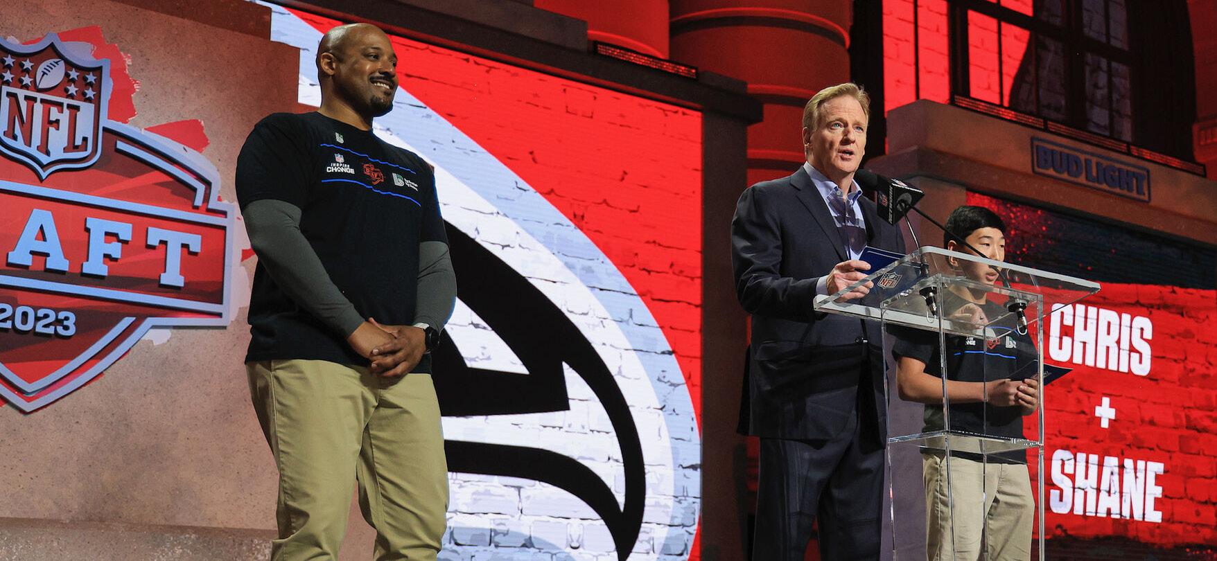 of Potential—not once, but three times, a first in the program’s history. The honor, awarded by Big Brothers Big Sisters, allows youth to represent the organization, showcasing the transformational power of mentorship. Then came a once-in-a-lifetime moment. In 2023, with the NFL Draft hosted in Kansas City, Big Brothers Big Sisters of America arranged for a youth to help announce a draft pick. NFL Commissioner Roger Goodell, a Big Brother himself, extended a personal invitation to Moore and Gifford. Together, they took the stage to announce the Atlanta Falcons’ first-round pick— poetically fitting, given Moore’s alma mater where he became a Delta Chi, Georgia Tech, is based in Atlanta.