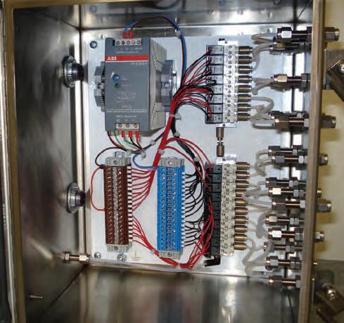 • 24VDC on-board power supply for solenoids, sensors, and analyzers (capability for additional power supplies if needed).