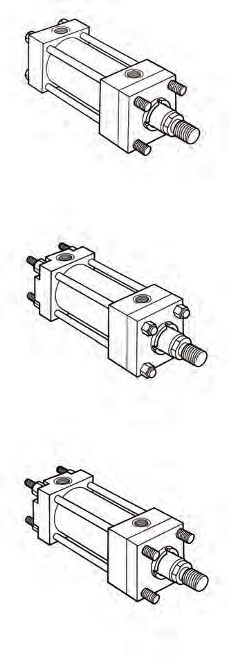 Zylinderbaureihe nach DIN 24 554 5 Befestigungsarten 2 Kolbenstangen pro Bohrung 1 Außengewinde am Kolbenstangenende pro Bohrung