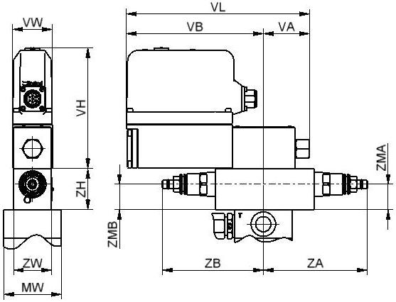5 Sperrventile in A und B + Maximaldruckabsicherung der Kolben- und Stangenseite