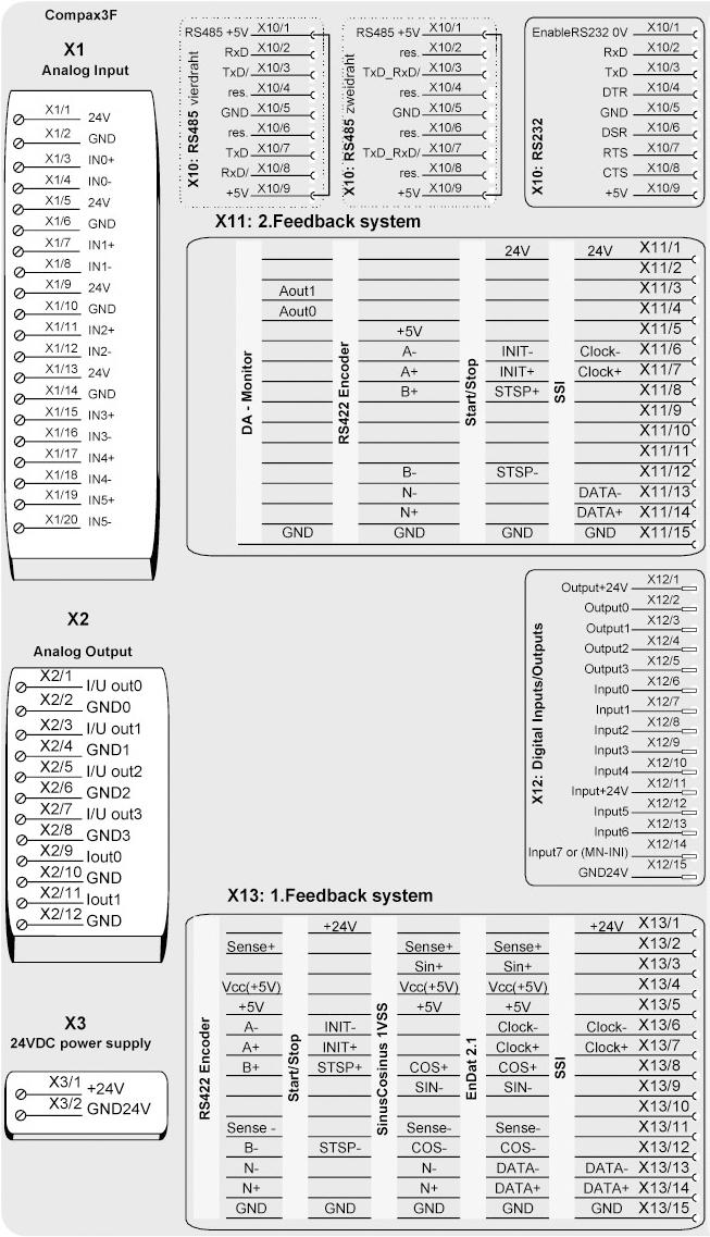 Für Genauigkeitsklasse 2 und 3 kommt der elektrohydraulische Regler Compax3F zum Einsatz, der eine Vielzahl von Regelungsmöglichkeiten bietet. Über eine ProfibusDP-Schnittstelle kann der Compax3F einfach mit einer SPS kommunizieren. Alle Parameter des Reglers sind voreingestellt, sodass die elektrohydraulische Achse sofort einsatzbereit ist.