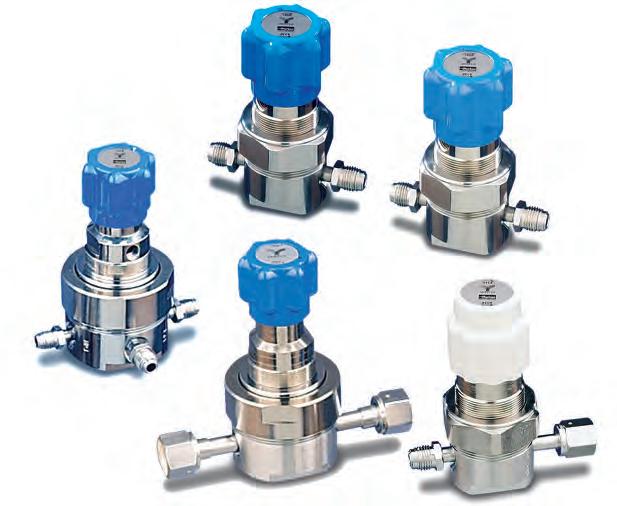 UHP High Performance, Point-Of-Use Regulators Welded, Stainless Steel SQ Series Product Features: • Metal-to-metal, diagragmto-body seal • Standard full internal electropolish • Design and materials of construction ensure compatibility with the high flow of corrosive gases • Sub-atmospheric available (SQ60SA) • Standard Hastelloy C-22® poppet and diaphragm • Tied-diaphragm for added safety • Capable of operating at a wide range of flows - see flow range table for details • No springs or threads are exposed to the wetted area
