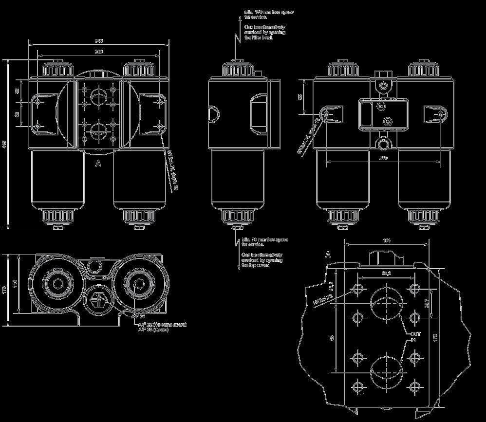 Der neue Duplexfilter DF40 bietet besondere Flexibilität da eine Wartung sowohl von oben als auch von unten vorgenommen werden kann. Das haltbare Gusseisengehäuse bietet sich besonders für den Einsatz in Motorenräumen an.