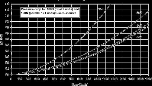 Druckabfall für 130D (2 Doppeleinheiten) und 130N (parallel 1+1 Einheiten): Kurve 2+2 verwenden