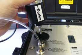 • Mit dem Gerät kann man die Proben direkt aus einem Hydrauliktank, Fass, Fahrzeugtank oder mit einem Druckminderungsadapter auch aus einer Hochdruck-OnlineHydraulikanlage entnehmen.