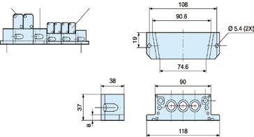 Befestigungsart 2 Schrauben M3 (NW 2,5: 2 x M4)
