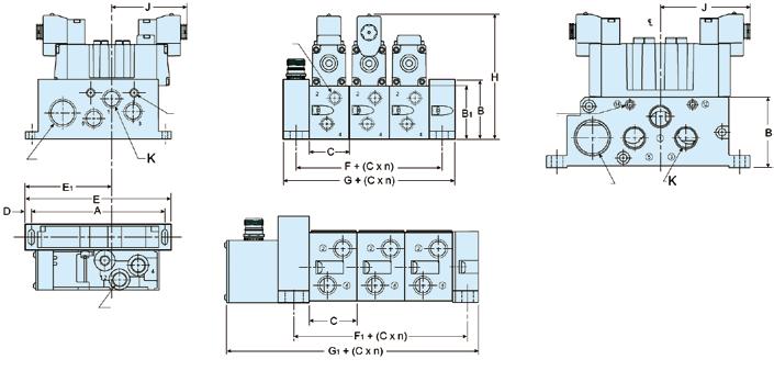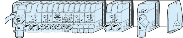 Magnetventile und Kabelstecker sind separat zu bestellen. Für jedes „E“ in der Ventil-Artikelnummer ist ein Vorsteuerventil erforderlich.