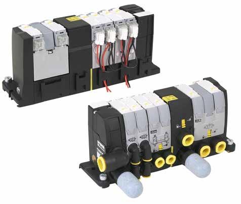Das Ventilsortiment Viking Lite zeichnet sich u. a. durch kompakte Abmessungen, direkt im Gehäuse liegende Anschlüsse und integrierte Montagebohrungen aus. Neben Einzelventil-Montage lässt sich das Viking-Lite-Ventil auch in einer Grundplatte anordnen, wobei die Ventile einen gemeinsamen Luftanschluss und Sammelauslässe haben.