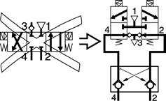 Wird der Eingang 1 mit Druckluft versorgt, so werden die Ausgänge 4 und 2 wechselweise mit Druckluft beaufschalgt.