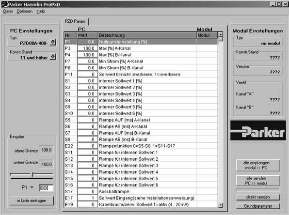 PC Bedienprogramm, kostenlos: www.parker. com/euro_hcd – siehe 'Support' oder direkt unter www.parker.com/propxd.