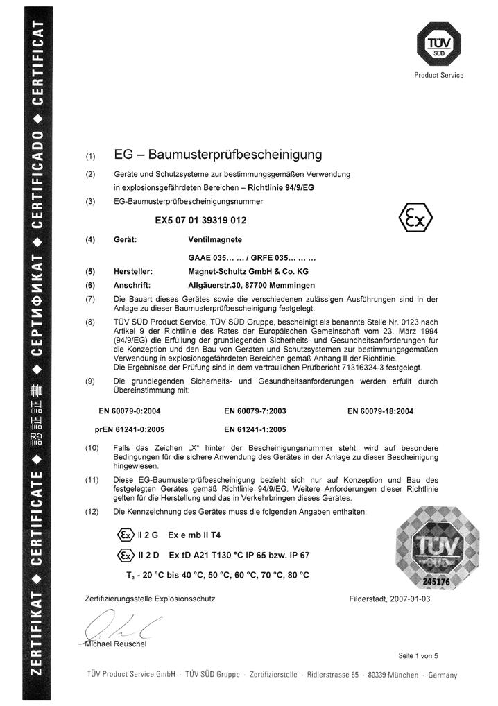 Ventils sowie des Magneten und der Konformitätserklärungen der Hersteller)