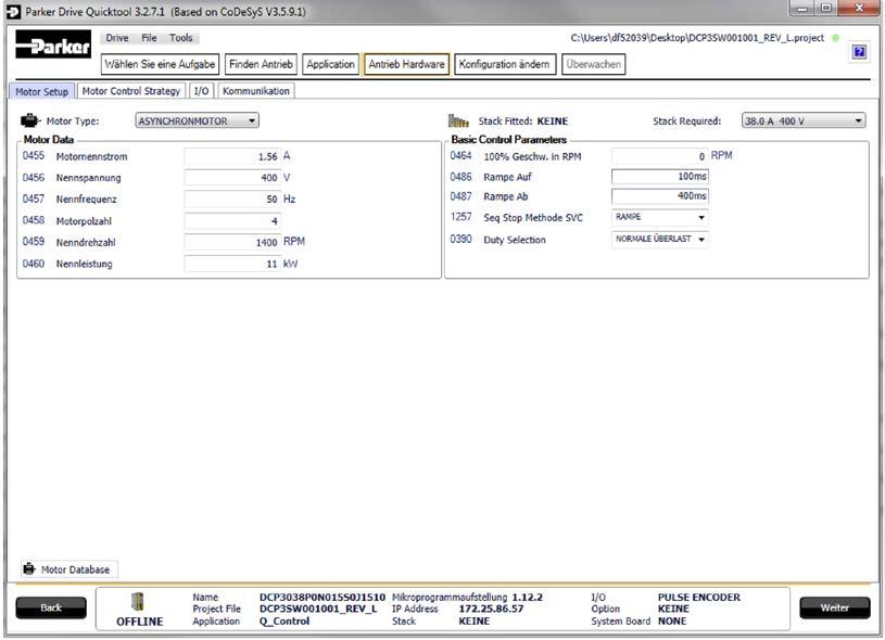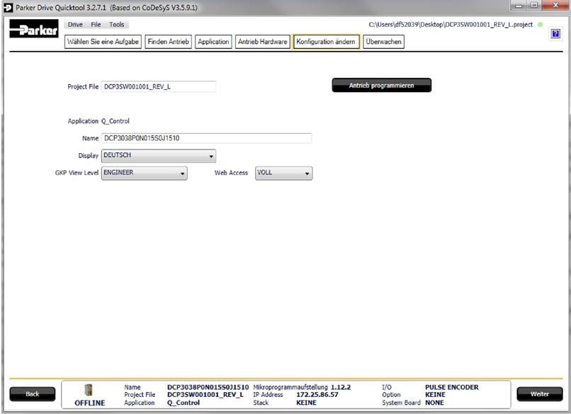 Programmierung (Parker Drive Quicktool) –PC-Programmier-Tool