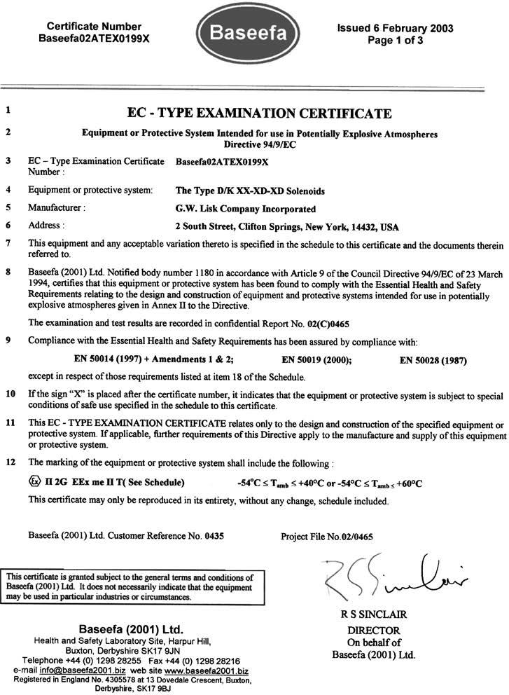 CE-Zeichen, EX-Schutzsymbol und Explosionsschutzklasse des Gesamtventiles nach EU Richtlinie 2014/34/EU