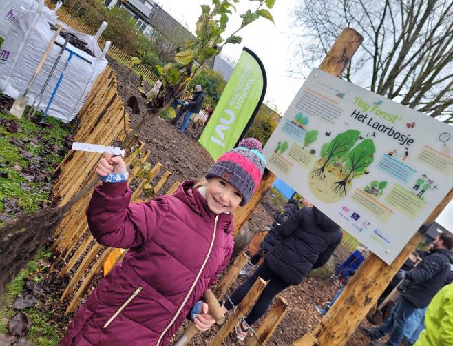 In het parkje naar De Laarakker is op woensdag 20 november samen met de kinderen van groep 5 t/m 8 van De Laarakker, IVN Natuureducatie en bouwbedrijf Volker Wessels een Tiny Forest aangeplant. Wethouder Marco van der Wal heeft het Tiny Forest ‘het Laarbosje’, samen met 2 leerlingen van de leerlingenraad officieel geopend.