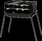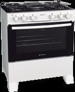 • Trempes individuais em ferro fundido com 6 pontas; • Puxador na porta do forno em alumínio escovado; • 2 grades deslizantes e ajustáveis.