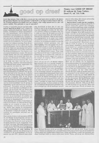 Eind oktober kwam er ook een nieuwe STUW uit, het blaadje van de dorpsraad, met het wel en wee van Meersel-Dreef. In het hoofdartikel borduurt Jan Hendrickx voort op hetzelfde thema waarover u in de voorgaande 'Goed op Dreef' kon lezen. Hij graaft daarbij terug tot juist na de oprichting van de fusiegemeente Hoogstraten. En vooral over de erkenning van Meersel-Dreef als zesde deeldorp in Hoogstraten, zoals het met afbakening en al verscheen in het informatieblad van de gemeente van mei 1979. Alhoewel deze erken18