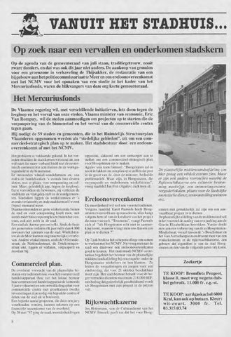 VANUIT HET STADHUIS... Op zoek naar een vervallen en onderkomen stadskern Op de agenda van de gemeenteraad van juli staan, traditiegetrouw, nooit zware dossiers, en dat was ook dit jaar niet anders. De aankoop van gronden voor een groenzone in verkaveling de Thijsakker, de restauratie van een bijgebouw aan het politiecommissariaat te Meer en een ereloonovereenkomst met het NCMV voor het opmaken van een studie in het kader van het Mercuriusfonds, waren de blikvangers van deze erg korte gemeenteraad.