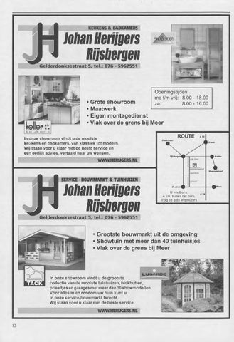 Grootste bouwmarkt uit de omgeving Showtuin met meer dan 40 tuinhuisjes Vlak over de grens bij Meer