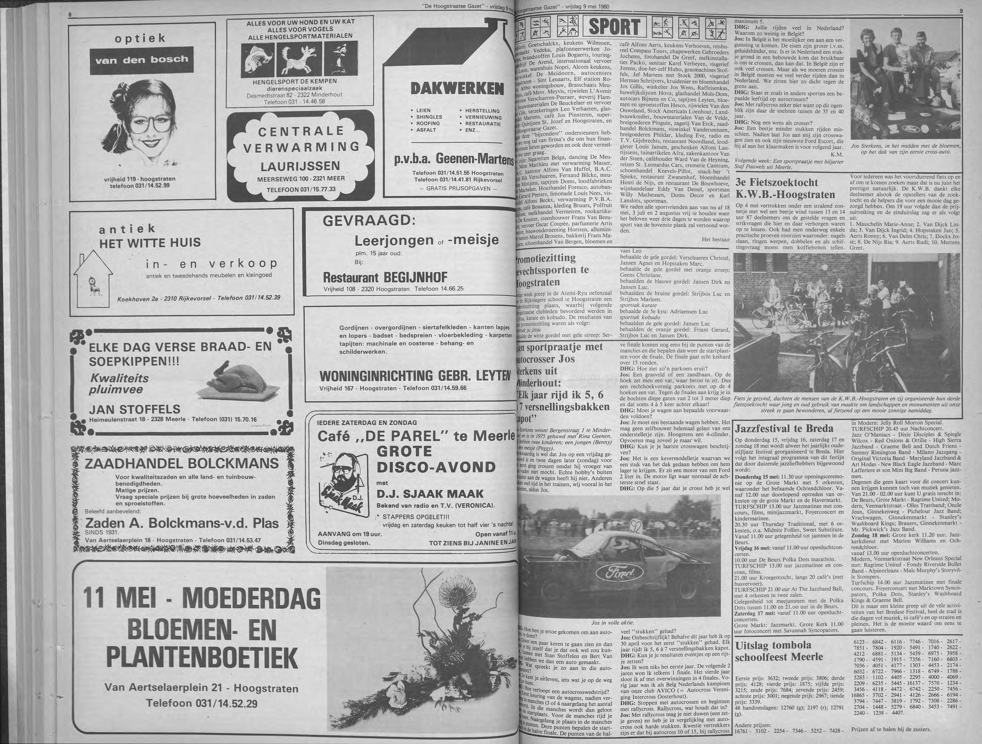 IEDERE ZATERDAG EN ZONDAG Café "DE PAREL" te Meerle GROTE DISCO-AVOND met D.J. SJAAK MAAK Bekend van radio en T.V. (VERONICA).