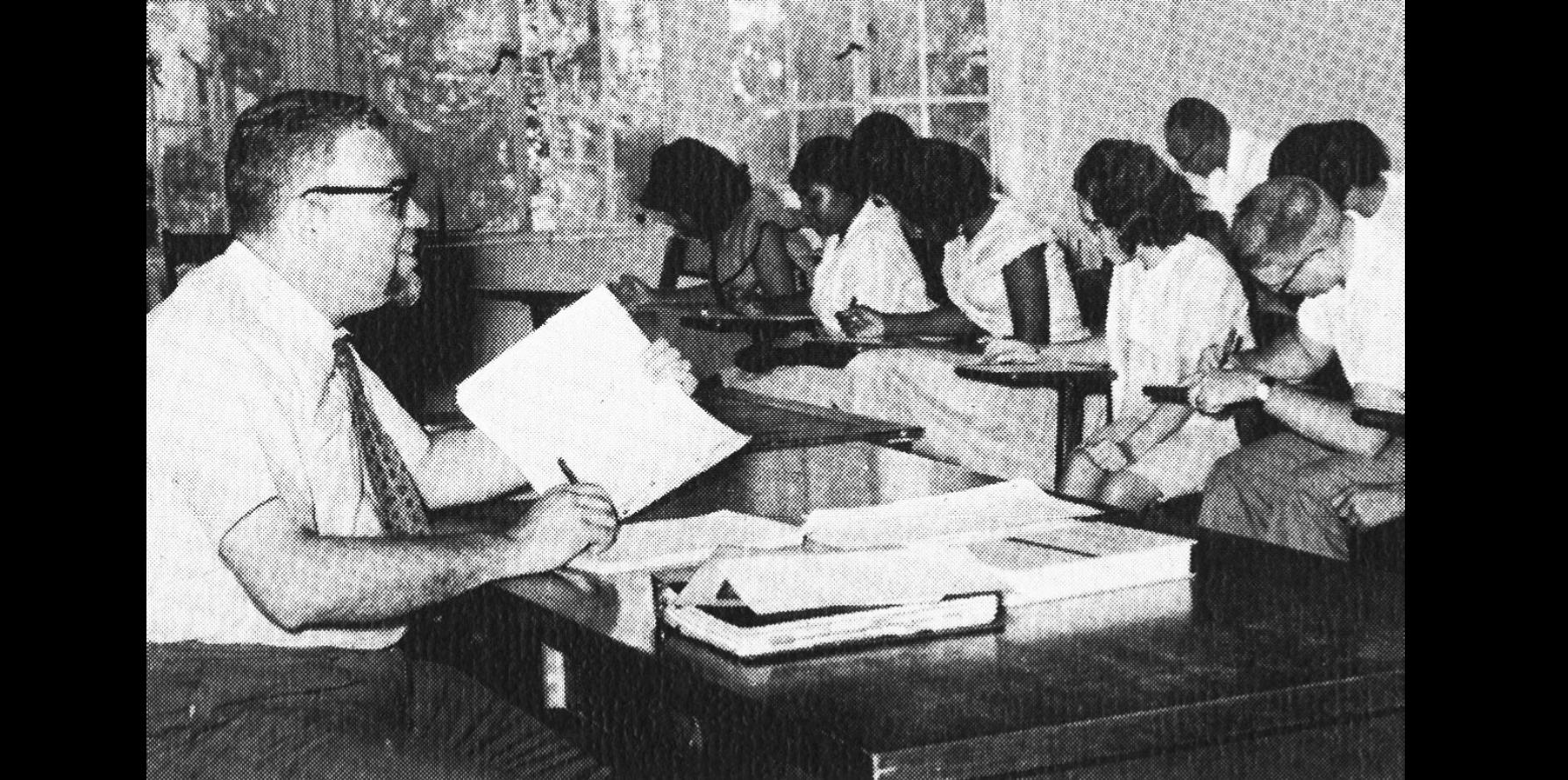 BROTHER DR. PAUL COOKE TEACHING CHEMISTRY TO SENIORS AT BANNEKER HIGH SCHOOL