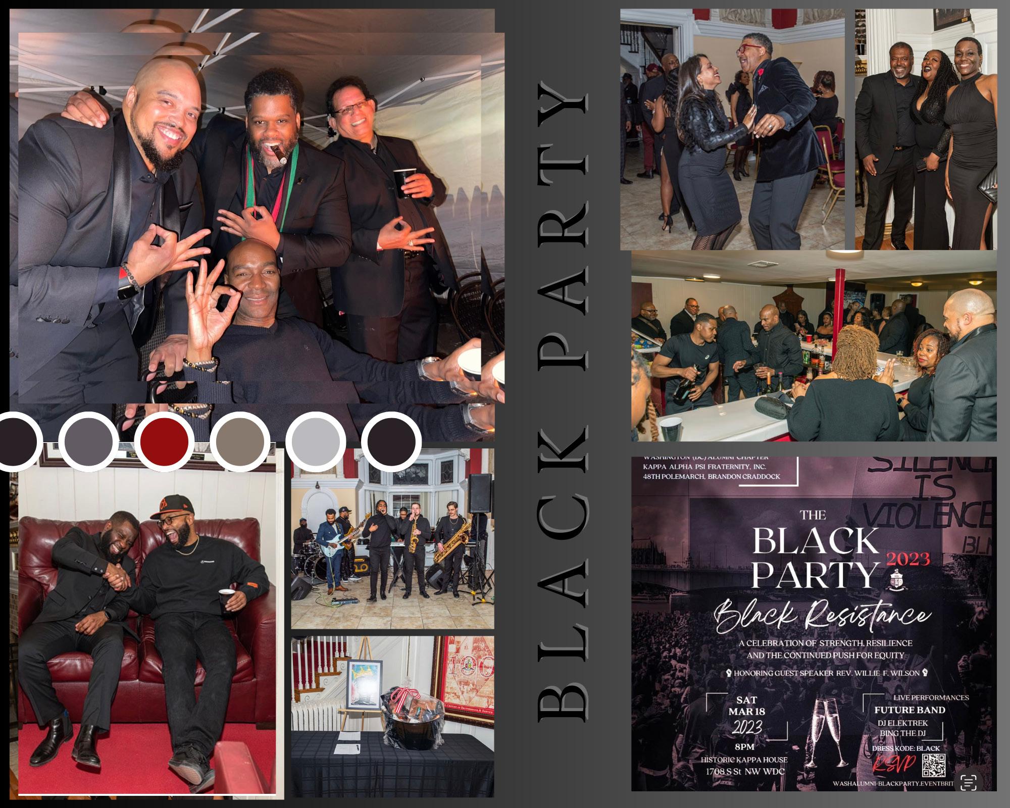 • After three long years of not partying in person, our signature event, the 11th Annual Black Party was back and better than ever! This year’s theme was Black Resistance: A Celebration of Strength, Resilience, and the Continued Push for Equity. The Black Party Committee honored Civil Rights Activist, Pastor Willie F. Wilson, who spoke on the history of Black Resistance in America. Pastor Wilson was thoughtfully introduced by our Master of Ceremonies, Brother Marques Smith. The stylish party attendees grooved to the Go-Go/R&B fusion sounds of DC’s own, Future Band. Between the sets of the band, the upstairs guests were entertained by Bing the DJ while the basement was held down by Brother Nick Sneed, also known as DJ eleKTRK.