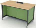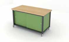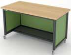 Mobile steel-framed workbench with lockable castors is specifically designed for practical education. The worksurfaces are made from durable laminated timber. Available in standard colours.