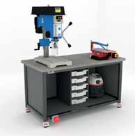 The AkiraTM WorkBenches with Machinery use the AkiraTM heavy-duty frame to provide systems with fully integrated extraction, safety-stop switches, and storage – all powered by a single 16A plug. These systems use a specialist castor which provides easy movement in transit, but also excellent stability through vibrationdampening pads.