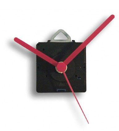 Economy clock movement mechanism with integral hanger, fixing hardware and push fit hands. Designed to fit a 10mm diameter hole, maximum material thickness 8mm. (PK1)