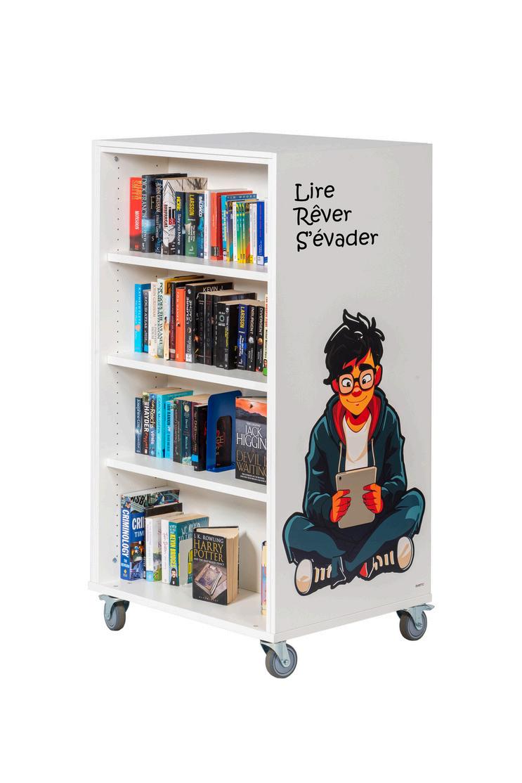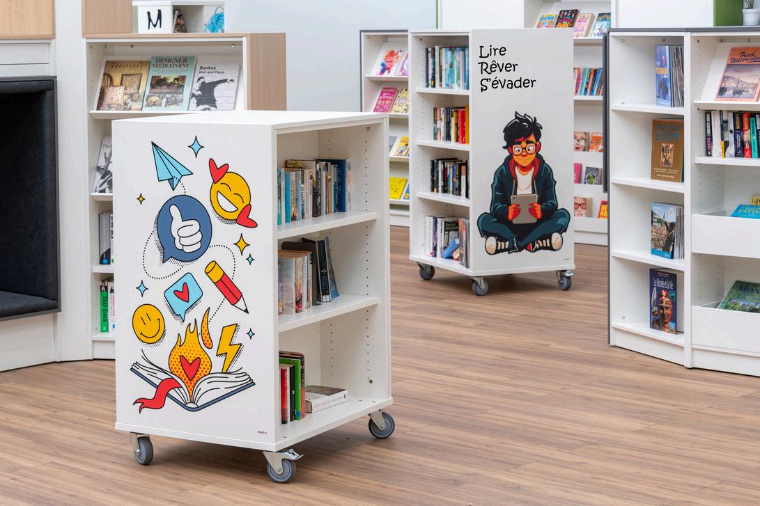 Les visuels dans les bibliothèques jouent un rôle essentiel pour dynamiser l’espace et rendre les lieux plus accueillants, intuitifs et esthétiquement agréables. En intégrant des images, des illustrations, des graphismes et des textes directement sur le mobilier, les bibliothèques peuvent créer des environnements qui stimulent l’imagination, encouragent la lecture et rendent l’expérience utilisateur plus immersive.