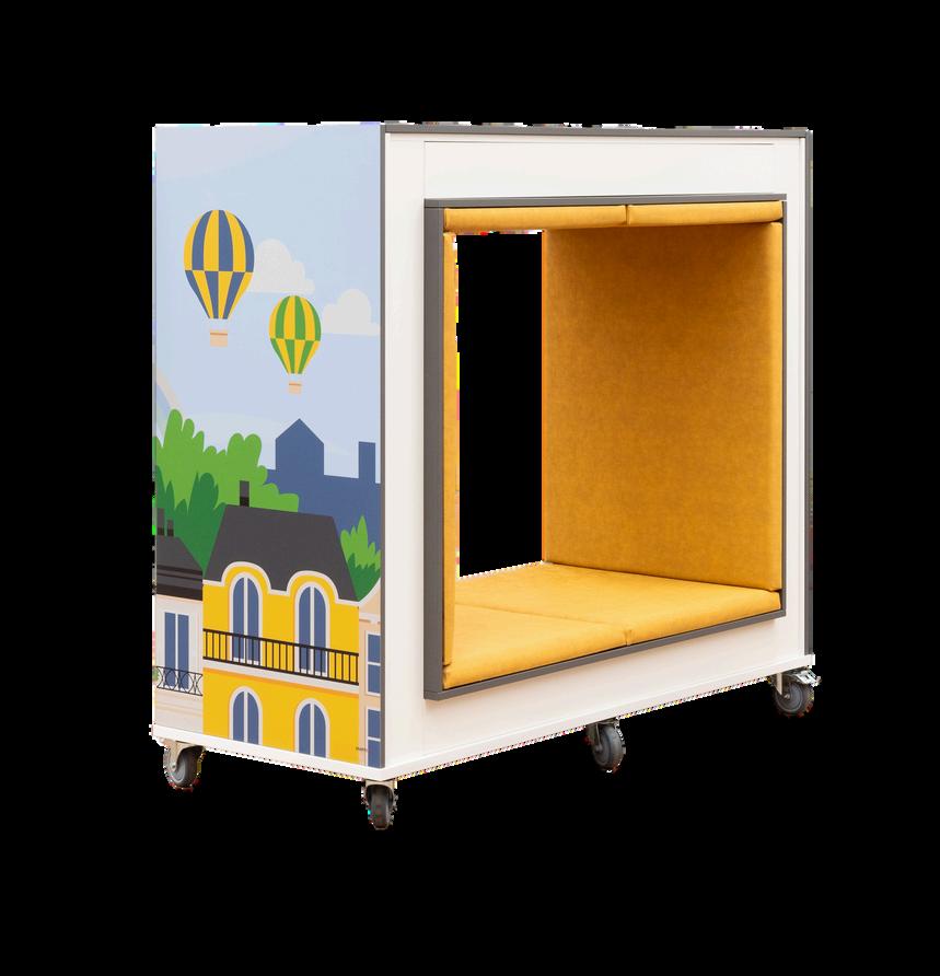 Le mobilier Everna™ avec les visuels permet de créer des espaces flexibles et interactifs. Ces travées mobiles peuvent être réaménagées en fonction de diverses activités, telles que des séances de contes, des coins lecture ou des projets de groupe, tout en maintenant une atmosphère fraîche et stimulante.