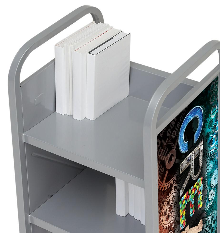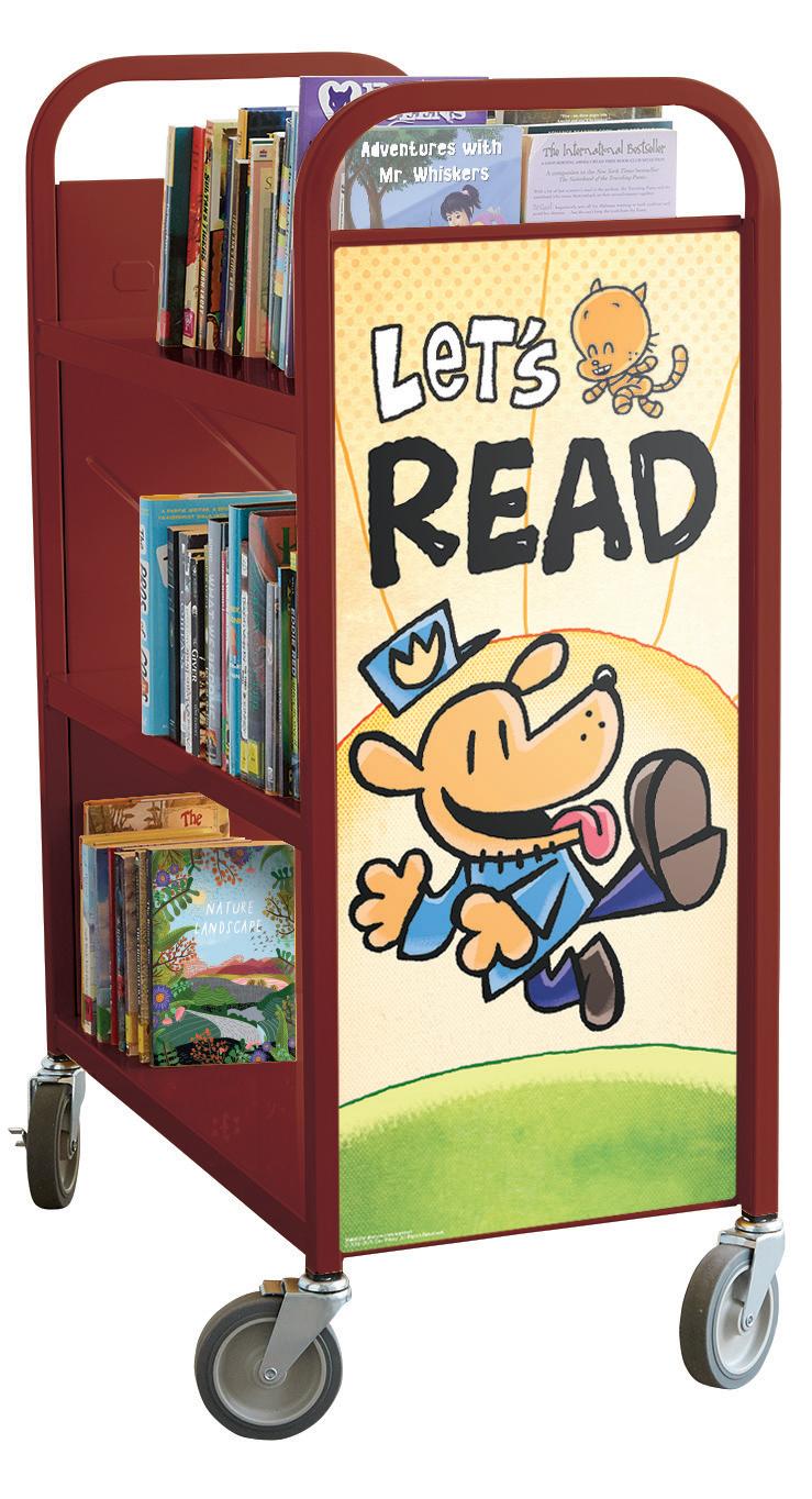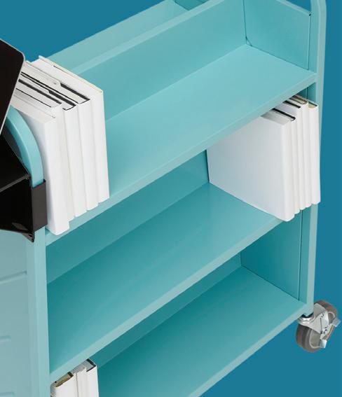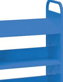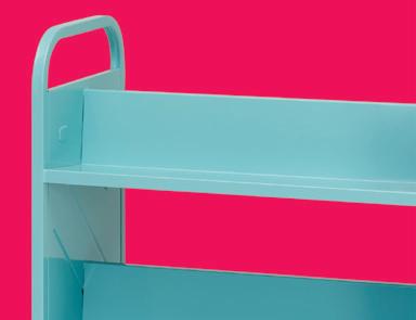 Flat-shelf booktrucks are ideal for transporting equipment and supplies. Sloped shelves are perfect for reshelving. End-of-range booktrucks are great for tight spaces. Whichever one you choose, you’ll be truckin’ with a splash of color and a