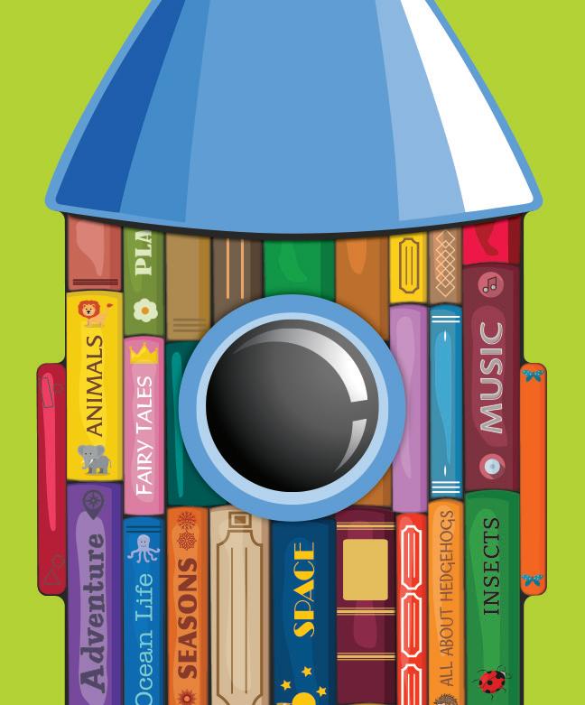 Blast off to new reading adventures with this 66¼"H x 28½"W rocket-themed wall decal