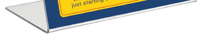 • Mount to shelving end panels with double-sided tape (not included) or use with black plastic Sign Base (sold separately) for freestanding applications