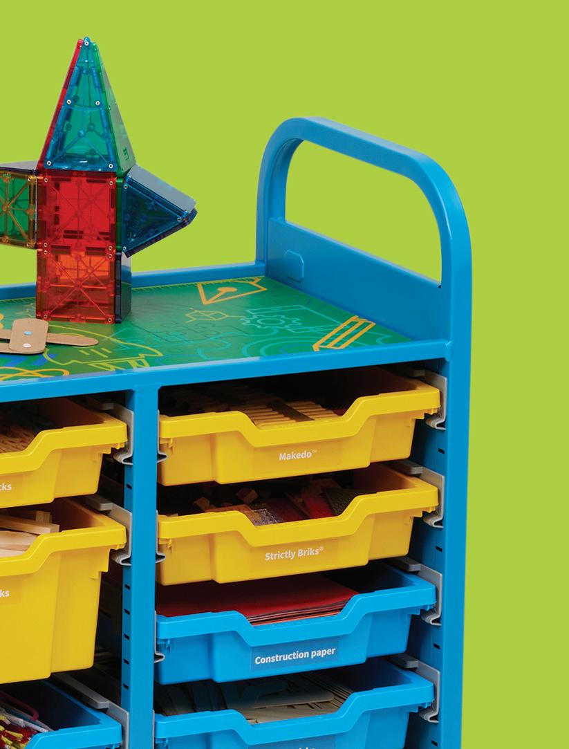 Flat-shelf booktrucks are ideal for transporting equipment and supplies. Sloped shelves are perfect for reshelving. End-of-range booktrucks are great for tight spaces. Whichever one you choose, you’ll be truckin’ with a splash of color and a swirl of shhh.