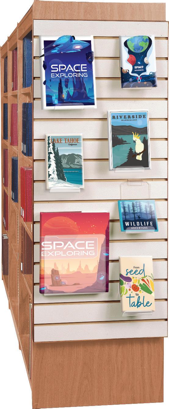 Flat-shelf booktrucks are ideal for transporting equipment and supplies. Sloped shelves are perfect for reshelving. End-of-range booktrucks are geat for tight spaces. Whichever one you choose, you’ll be truckin’ with a splash of color and a swirl of shhh