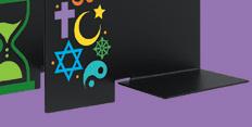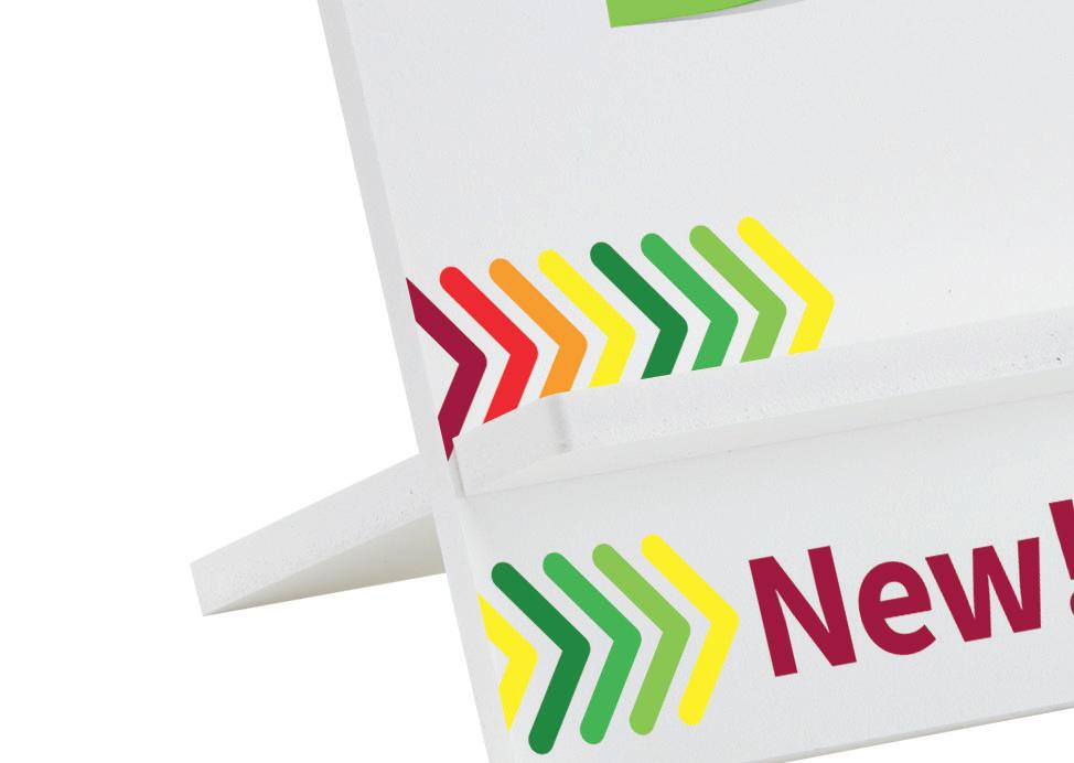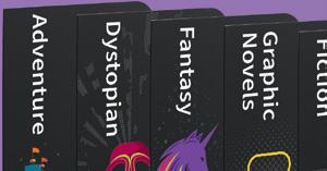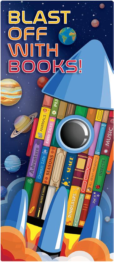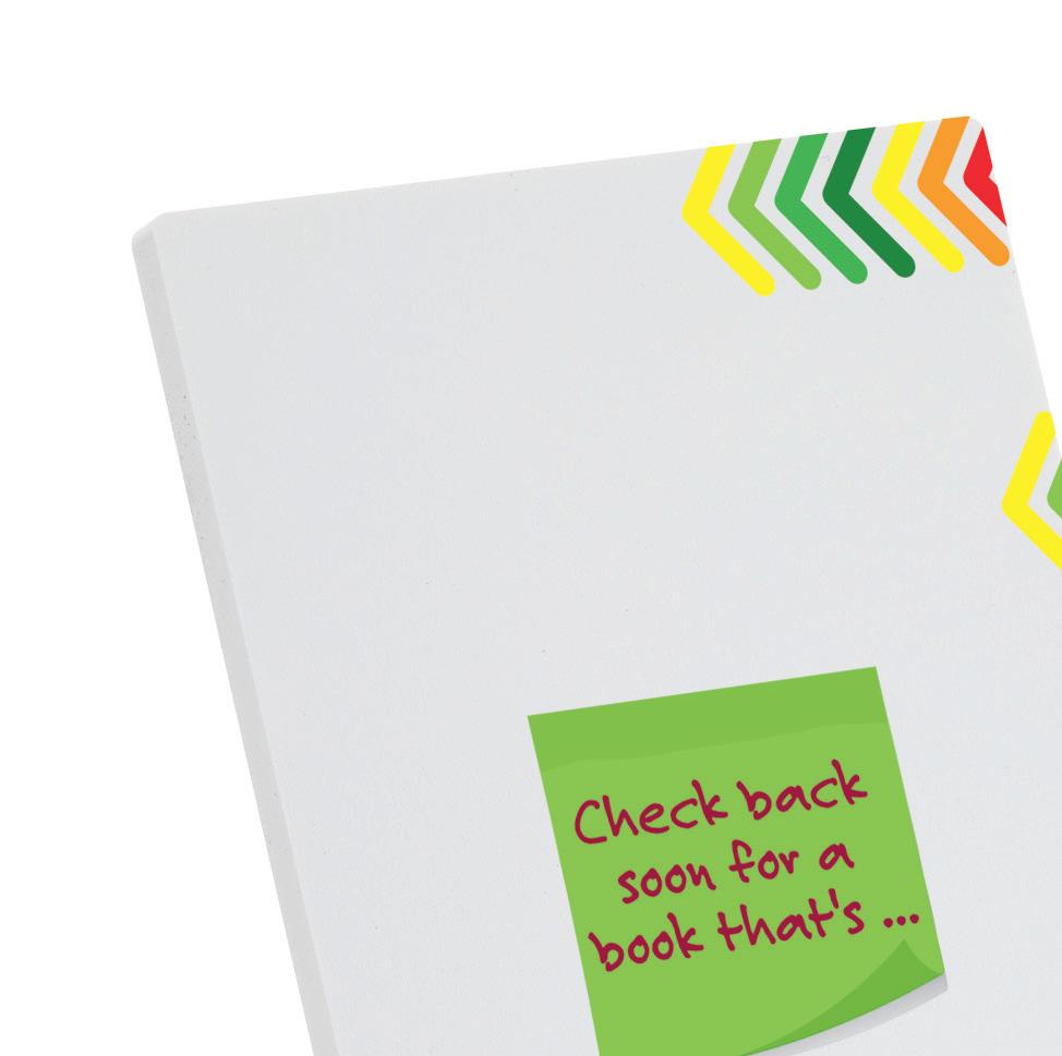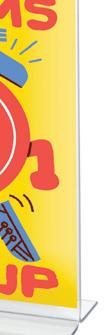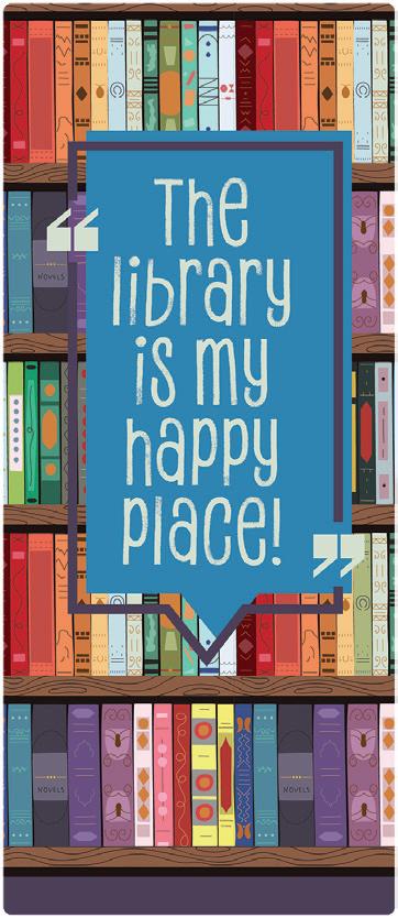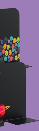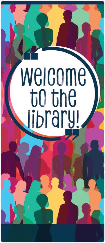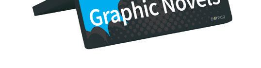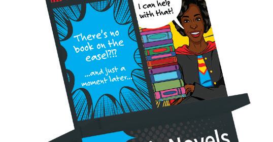 Graphic tabletop easels grab attention when books are displayed and encourage readers to check back later when they’re empty