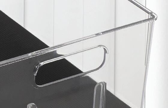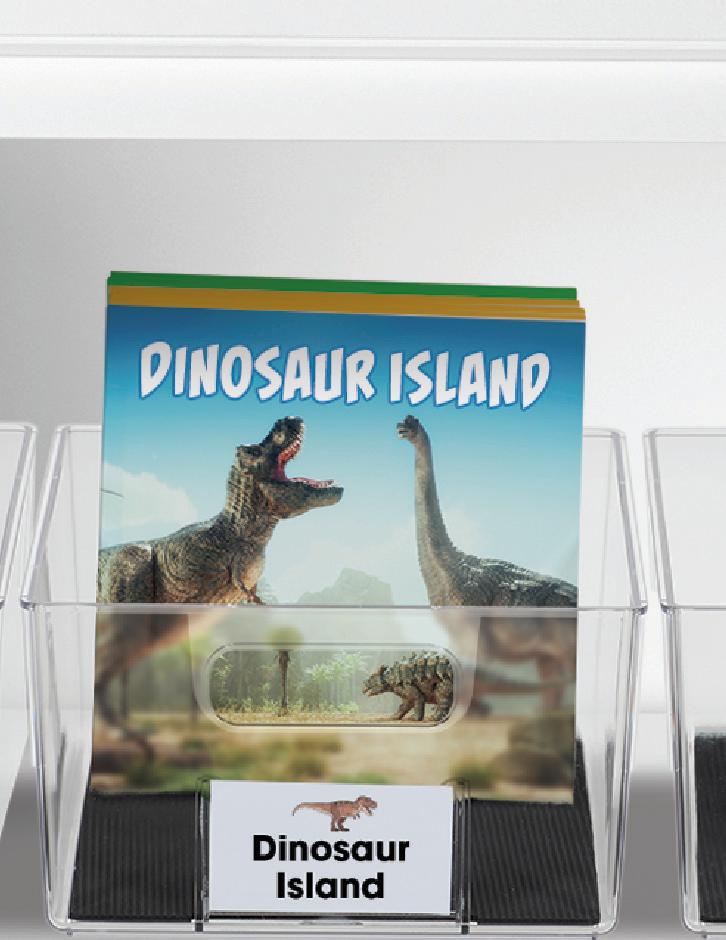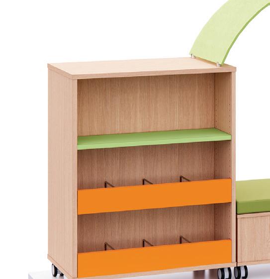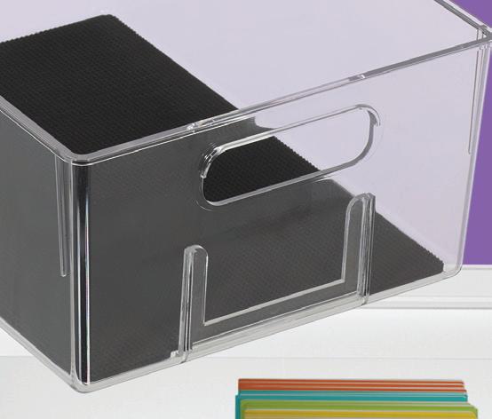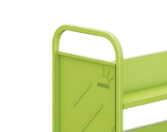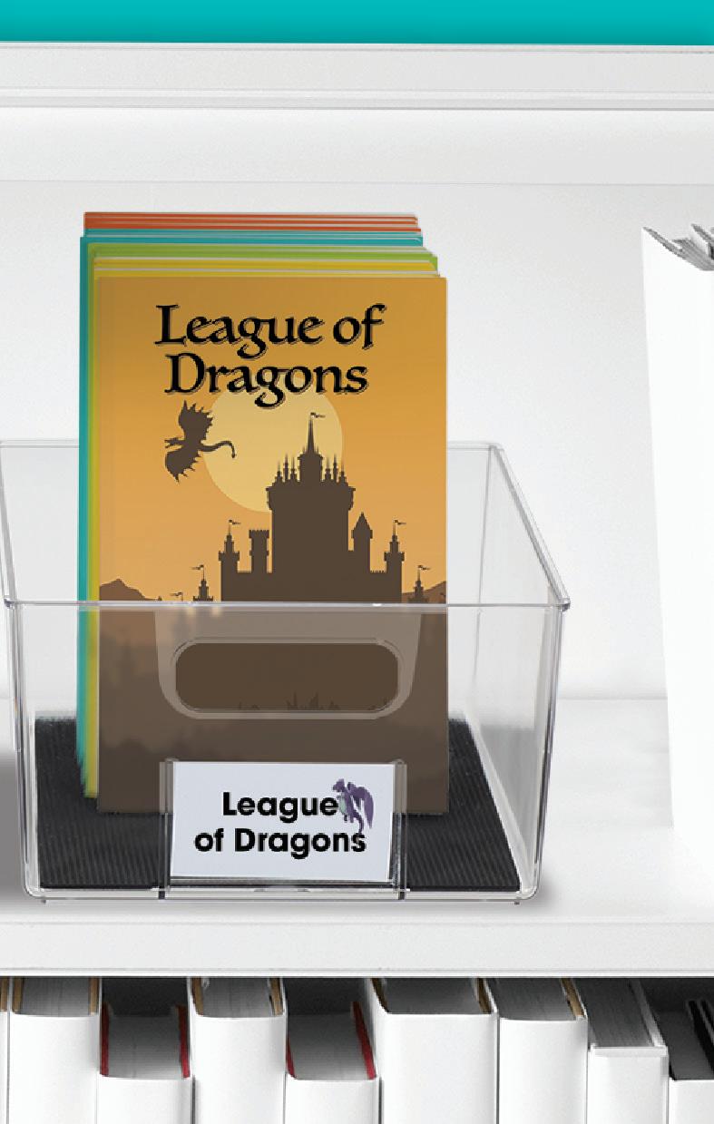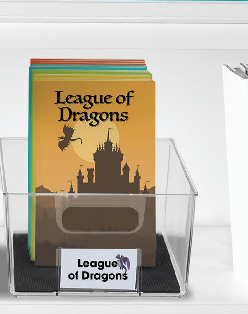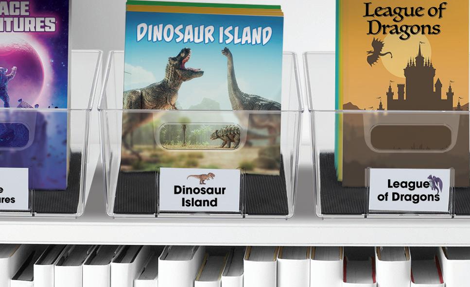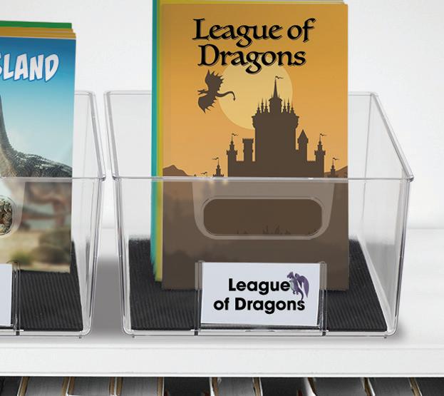 • Cutout handles in front and back make it easy for kids to grab bins from library shelves for flip-through browsing