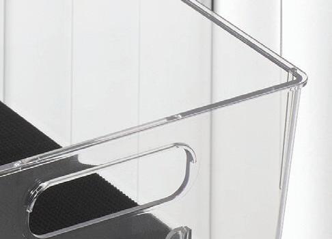 • A built-in label holder (13/4"H x 3"W) on each bin creates a clean aesthetic (labels not included)