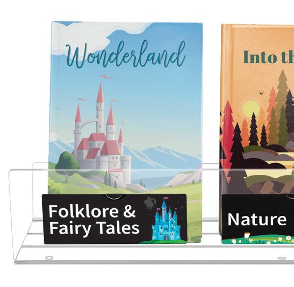 Face-out displays with built-in sign holders to facilitate browsing within your stacks