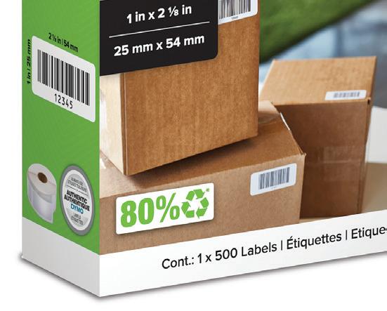 • 3/4"W x 500'L rolls come on a 1" core with dispenser and include approximately 200 continuous self-adhesive messages